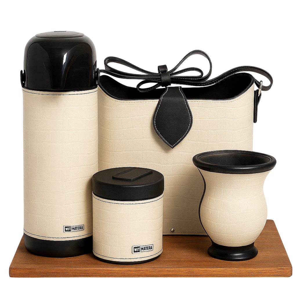 Kit Chimarrão Mateira 5 PEÇAS SLIM OFF WHITE CROCO