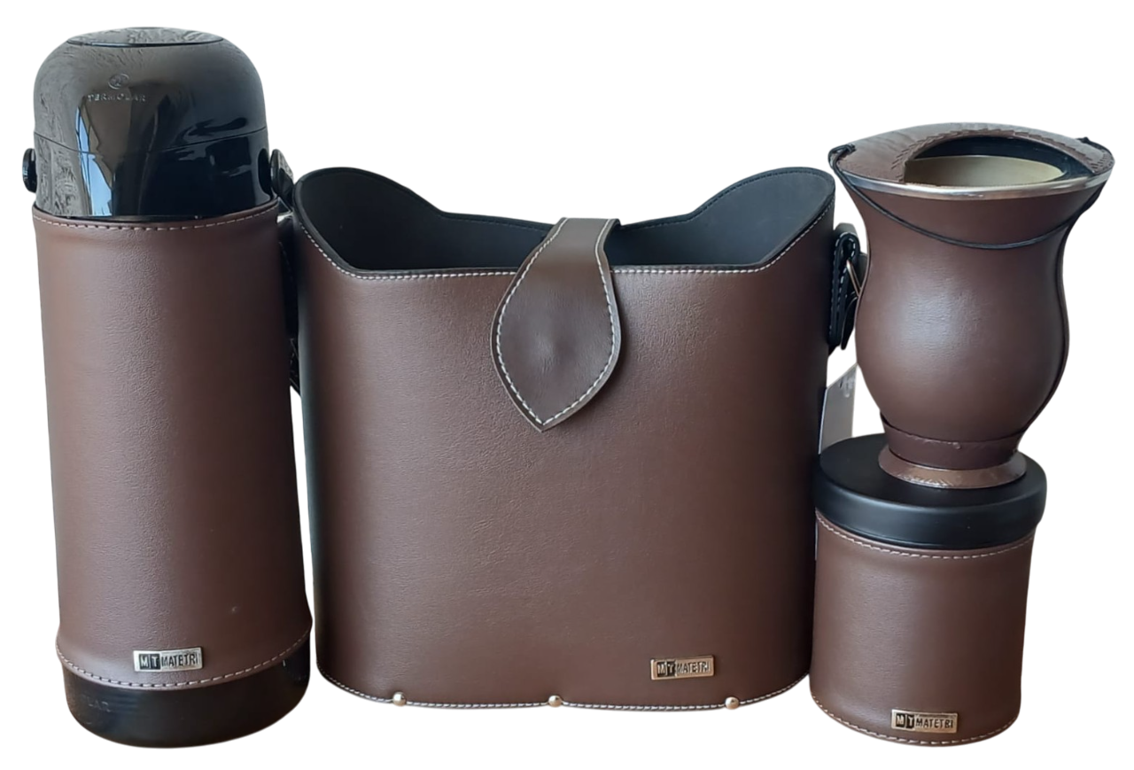 Kit Bolsa Chimarrão Mateira Feminina Slim Marrom 5 peças