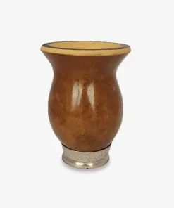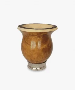Cuia para Chimarrão com pé em metal. Produto feito com porongo natural, para a preparação do clássico chimarrão. Seu tamanho é médio, portanto serve tanto para consumo individual como para pequenas rodas de Chimarrão. Recomenda-se o uso de ervas finas, destinadas para esse tipo de mate.
